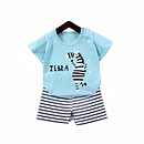• Two-piece set – Light blue short-sleeve T-shirt with matching striped shorts.