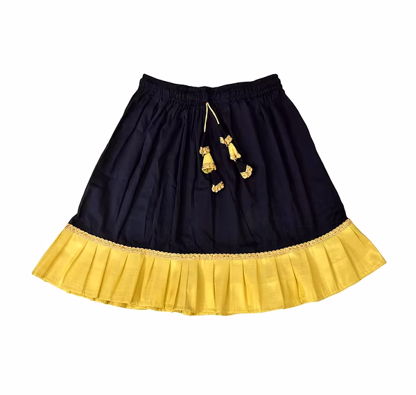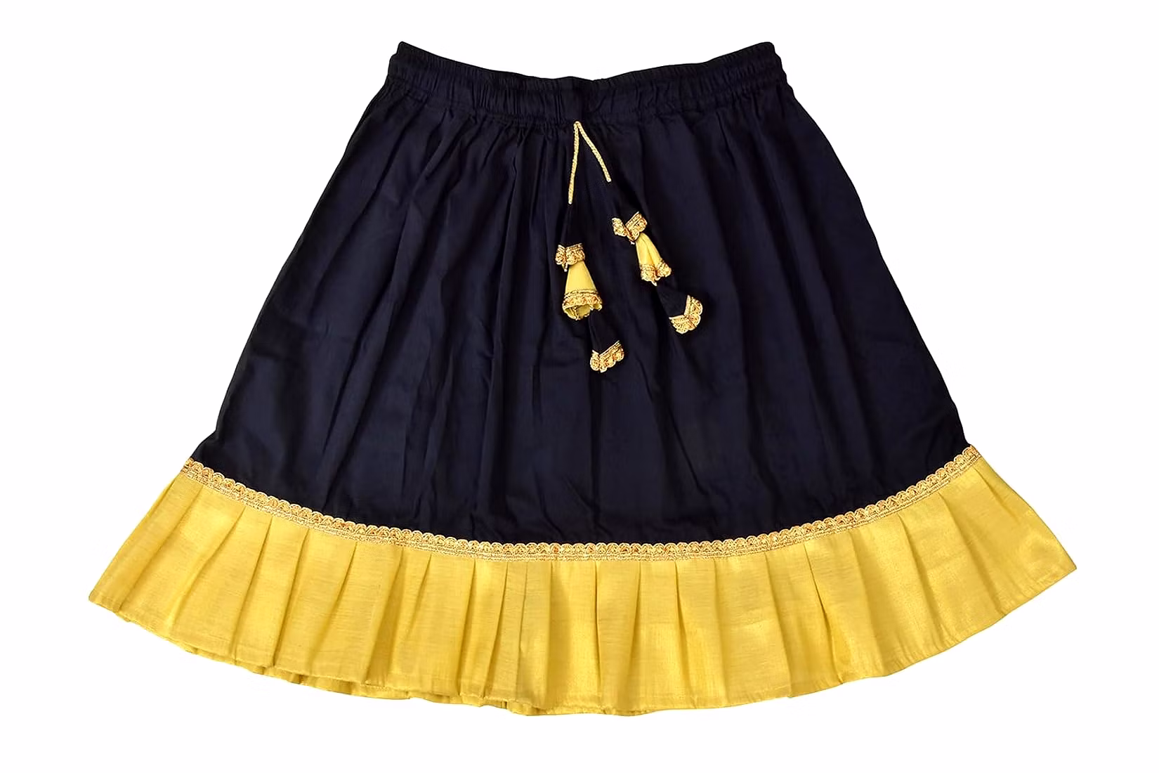 • Colour Combination – Elegant navy blue base with golden pleated border.