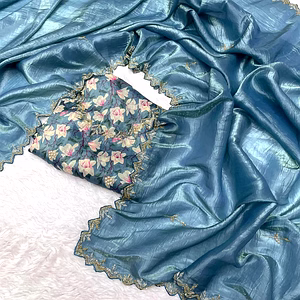 Introducing the exquisite Gold Crush Handmade Glass Tissue Saree, a true masterpiece that will leave you spellbound. This saree is a perfect blend of elegance and tradition, designed to make you stand out on any occasion. Crafted with utmost care and precision, this saree features delicate handmade glass tissue fabric that shimmers and shines with every movement. The intricate gold crush design adds a touch of opulence, making it a true work of art. The Gold Crush Handmade Glass Tissue Saree is not only visually stunning, but also incredibly comfortable to wear. The lightweight fabric drapes effortlessly and allows for easy movement, ensuring that you feel confident and at ease throughout the day or evening. Paired with the saree is a stunning Banglory Silk Blouse, designed to perfectly complement the saree's beauty. The blouse is crafted with premium quality silk, providing a luxurious and comfortable fit. Its intricate detailing and elegant design add an extra touch of glamour. This breathtaking saree is not just about looks, it also offers versatility and convenience. It can be effortlessly styled for both formal and casual occasions, making it a perfect choice for weddings, parties, festivals, and more. Invest in the Gold Crush Handmade Glass Tissue Saree and experience the epitome of luxury and style. Be the center of attention at every event and make a lasting impression. With its unique blend of craftsmanship, comfort, and elegance, this saree is a true treasure that will make you feel like royalty. So why wait? Embrace the allure of the Gold Crush Handmade Glass Tissue Saree and make a statement wherever you go. Order now and add a touch of sophistication to your wardrobe.