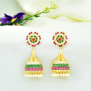 Aritrick presents the Gold Plated Doublet And American Diamond Stone Studded Long Earrings, a timeless piece designed to add grace and luxury to your jewelry collection. Featuring exquisite natural stones and a radiant gold polish, this ring embodies sophistication and class.
