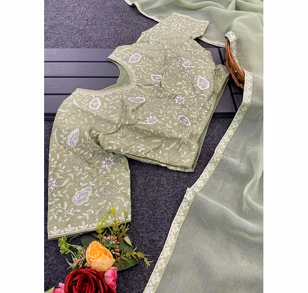 This exquisite saree is a true masterpiece that is sure to turn heads at your next formal event. The luxurious fabric is adorned with golden crystal fabric and marbal beading, adding a touch of glamour and sophistication to your look. The full saree sequence border and pallu are intricately designed to create a stunning visual effect that will leave a lasting impression. Crafted from high-quality Rafael fabric, this saree is lightweight and comfortable, making it easy to wear for long periods of time. The allover saree sequence work is complemented by matching piping for a seamless finish. The saree comes with a fully stitched blouse that is handcrafted with intricate multi-work detailing. The mono Banglori work and handwork add a touch of elegance to the blouse, making it the perfect match for the saree. The blouse is available in sizes 40 up to 42, ensuring a comfortable and flattering fit for all body types. This saree is available in a stunning monochromatic Banglori color, adding to its already impressive allure. With its exquisite design and superior craftsmanship, this saree is the perfect choice for any formal occasion. Upgrade your wardrobe with this timeless piece today and experience the luxury and glamour that it has to offer.