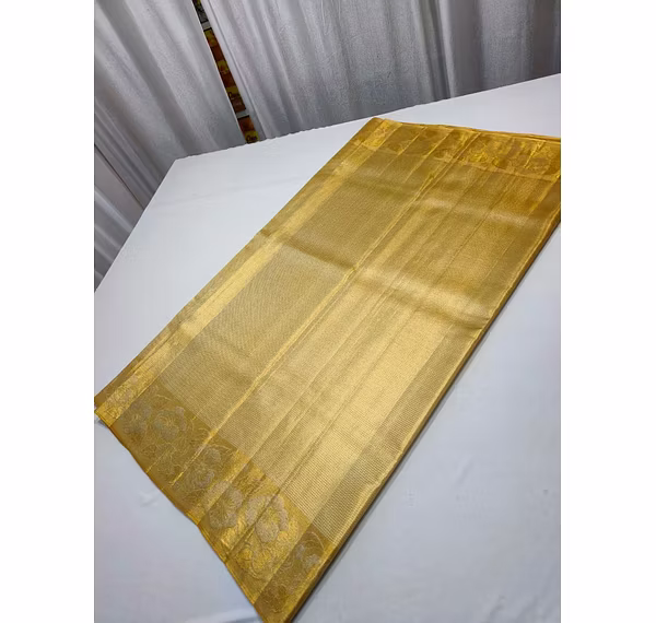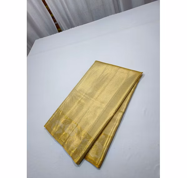 Elevate your style with our Golden Tissu All Over Emboss Saree, a blend of tradition and luxury. Handwoven with intricate details, this saree is a masterpiece for those who appreciate timeless elegance.