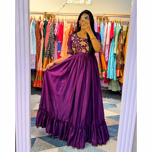 Gorgette Faux Silk Threadwork Mirror Work Dress with Dupatta (1kg): This exquisite Gorgette Faux Silk Dress with Dupatta is a true masterpiece of craftsmanship and elegance. Every intricate detail of this dress has been carefully designed and executed to create a stunning and luxurious ensemble that is sure to turn heads. The dress features a beautiful combination of threadwork and mirror work, adding a touch of traditional charm to its modern silhouette. The delicate threadwork is meticulously handcrafted, showcasing intricate patterns and motifs that accentuate the overall design of the dress. The mirror work adds a glamorous and radiant look, reflecting light and creating a mesmerizing effect. Made from high-quality Gorgette Faux Silk fabric, this dress is not only visually appealing but also comfortable to wear. The lightweight and flowy material drapes gracefully, creating a flattering silhouette for any body type. The smooth texture of the fabric feels soft against the skin, ensuring utmost comfort throughout the day or evening. The dress is adorned with a variety of embellishments that further enhance its beauty. From shimmering sequins to sparkling beads, each embellishment adds a touch of sparkle and elegance to the overall design. The intricate details and thoughtful placement of these embellishments make this dress a true work of art. Accompanying the dress is a stunning Dupatta that perfectly complements the ensemble. Made with the same Gorgette Faux Silk fabric, the Dupatta features matching threadwork and mirror work, seamlessly tying the whole look together. Whether draped gracefully over the shoulders or delicately wrapped around the neck, the Dupatta adds an extra layer of elegance and sophistication to the dress. This Gorgette Faux Silk Threadwork Mirror Work Dress with Dupatta (1kg) is a testament to the skill and creativity of the artisans who have brought it to life. It is a true statement piece that effortlessly combines traditional craftsmanship with modern design, making it a perfect choice for any special occasion or festive celebration.