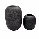 The smaller vase, with dimensions of 9.5 inches in height and 10.5 inches in diameter, complements its larger counterpart with a more compact and charming design. Together, they form a harmonious duo that exudes elegance and sophistication.
