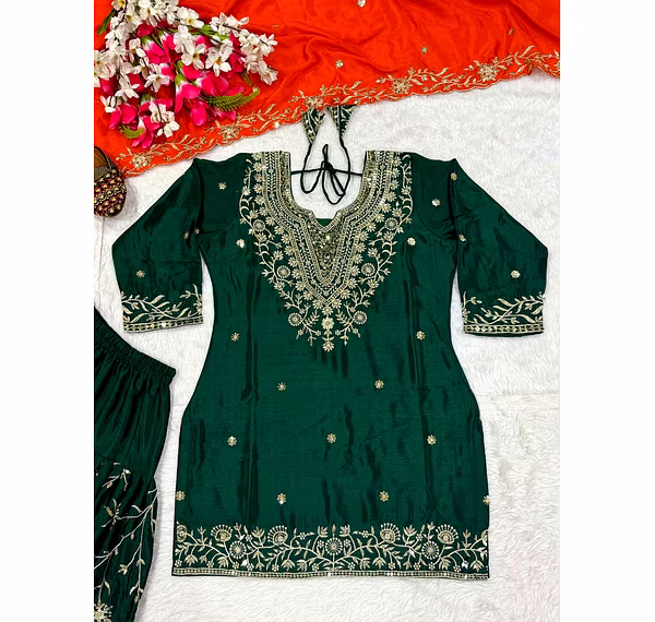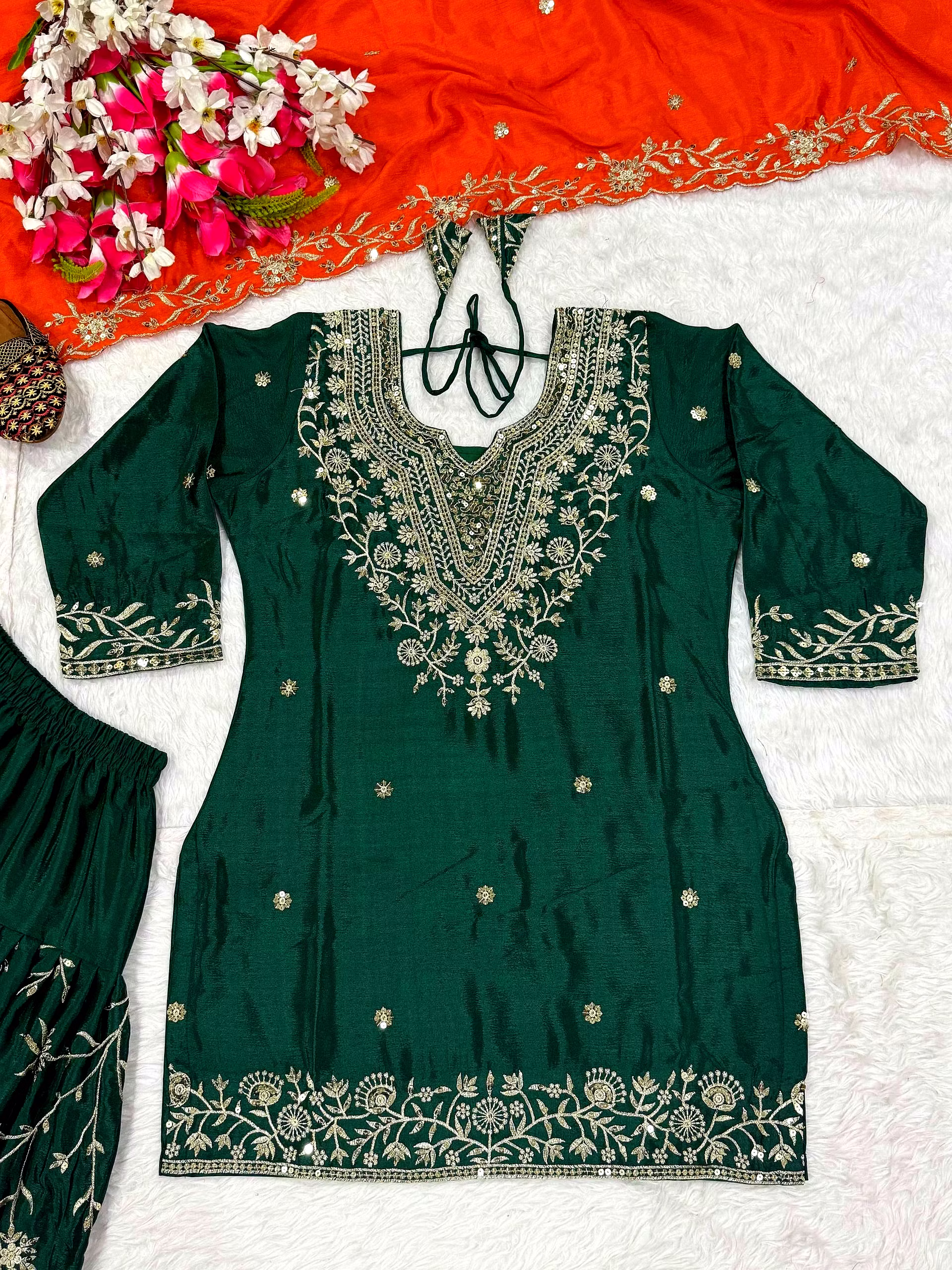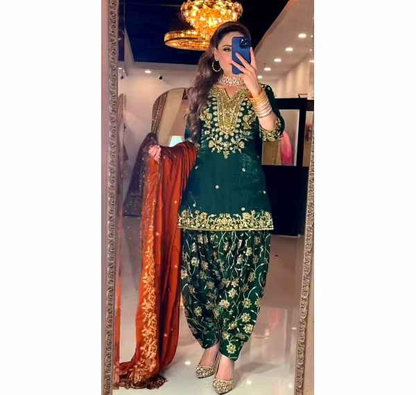 Dhoti Salwar: Chinon Silk with Sequence Work (Fully Stitched)