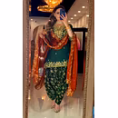 Step into the spotlight with our Green Chinon Silk Anarkali Suit, designed to make you feel like royalty. The flared silhouette and intricate detailing exude grace and charm, perfect for special occasions.