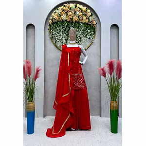 Not only does this Party Wear Sharara Suit showcase a dazzling design, but it also prioritizes comfort. The soft fabric and well-tailored fit ensure you can dance the night away with ease, blending style with comfort effortlessly.