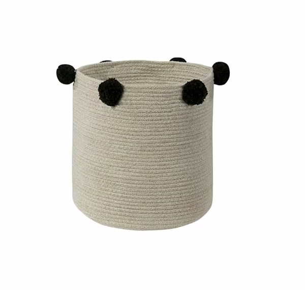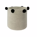 Grey Cotton Yarn Knitted Storage Basket With Pom Poms.