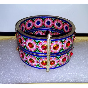 Gulabi Meenakari or Pink Enamelling of Banaras is a Unique art form, characterised by pink strokes on white enamel. The most alluring of silver and gold metals decorations, with it's artistic quality and use of colours with natural and leadless dyes, it is a huge attraction for people having a taste for design and fashion.