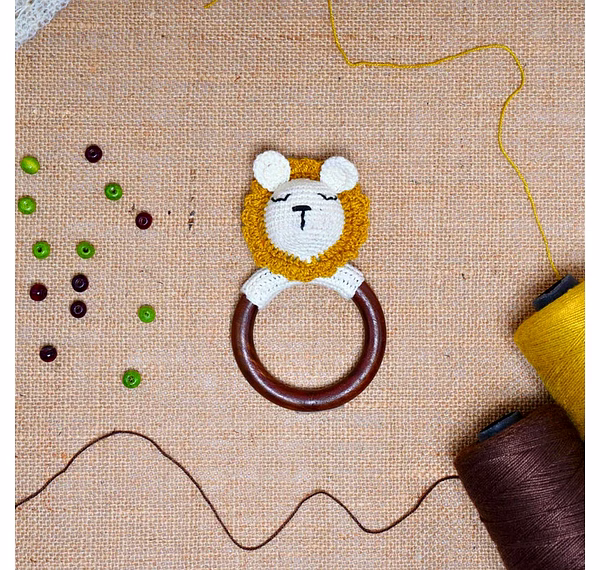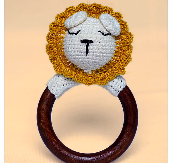 With its handcrafted charm and functional design, this lion rattle makes a memorable present for newborns, baby showers, or nursery decor.
