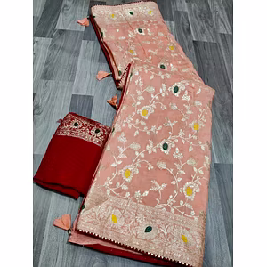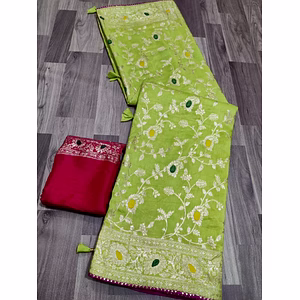 Introducing our exquisite Hand-Dyed Shibori Saree with Silk Embroidered Blouse - a captivating masterpiece that effortlessly combines tradition with contemporary elegance. Each saree is meticulously handcrafted by skilled artisans, ensuring a one-of-a-kind creation that is sure to make a lasting impression. The intricate Shibori dyeing technique used on the saree creates mesmerizing patterns and textures, making it a true work of art. The vibrant colors and fluid lines add a touch of whimsy and playfulness to the traditional garment, making it perfect for any occasion - be it a wedding, festival, or a special evening out. Crafted from the finest quality silk, this saree drapes luxuriously and exudes a sense of opulence. The lightweight fabric ensures comfort throughout the day, allowing you to move with grace and ease. The contrasting silk embroidered blouse complements the saree beautifully, adding a touch of sophistication and refinement. Not only does this saree boast exquisite craftsmanship and unparalleled beauty, but it also offers versatility. The timeless design allows you to effortlessly transition from day to night, making it a wardrobe staple that will never go out of style. Pair it with statement jewelry and heels for a glamorous look, or dress it down with flats for a more casual yet elegant ensemble. Indulge in the allure of our Hand-Dyed Shibori Saree with Silk Embroidered Blouse and experience the magic of traditional Indian craftsmanship combined with contemporary elegance. Embrace your individuality and make a bold fashion statement with this extraordinary creation.