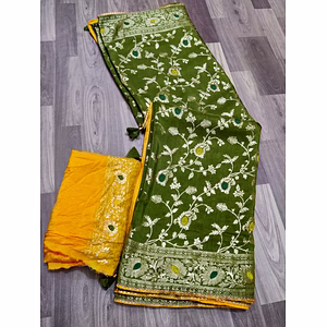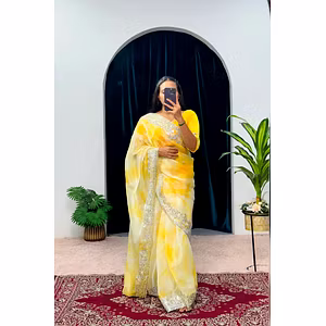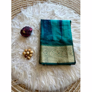 Introducing our exquisite Hand-Dyed Shibori Saree with Silk Embroidered Blouse - a captivating masterpiece that effortlessly combines tradition with contemporary elegance. Each saree is meticulously handcrafted by skilled artisans, ensuring a one-of-a-kind creation that is sure to make a lasting impression. The intricate Shibori dyeing technique used on the saree creates mesmerizing patterns and textures, making it a true work of art. The vibrant colors and fluid lines add a touch of whimsy and playfulness to the traditional garment, making it perfect for any occasion - be it a wedding, festival, or a special evening out. Crafted from the finest quality silk, this saree drapes luxuriously and exudes a sense of opulence. The lightweight fabric ensures comfort throughout the day, allowing you to move with grace and ease. The contrasting silk embroidered blouse complements the saree beautifully, adding a touch of sophistication and refinement. Not only does this saree boast exquisite craftsmanship and unparalleled beauty, but it also offers versatility. The timeless design allows you to effortlessly transition from day to night, making it a wardrobe staple that will never go out of style. Pair it with statement jewelry and heels for a glamorous look, or dress it down with flats for a more casual yet elegant ensemble. Indulge in the allure of our Hand-Dyed Shibori Saree with Silk Embroidered Blouse and experience the magic of traditional Indian craftsmanship combined with contemporary elegance. Embrace your individuality and make a bold fashion statement with this extraordinary creation.