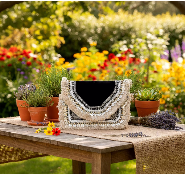 Embrace your individuality and stand out from the crowd with our BOHO Fringe Beaded Bag. The versatile design allows you to carry it with confidence from day to night, whether you're heading to a music festival or a chic urban brunch. The fusion of black and white hues adds a classic yet contemporary touch, ensuring that this bag complements a variety of looks effortlessly.