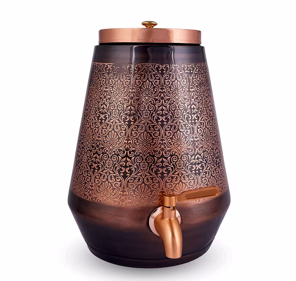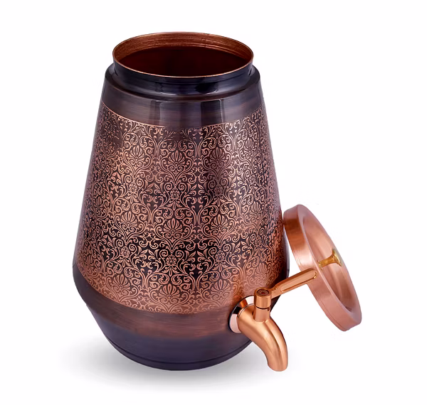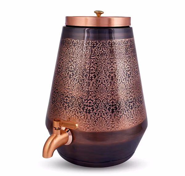 Not just a beautiful decor item, this 5-liter Copper Matka with Tab is also highly functional. Experience the benefits of storing water in copper for enhanced well-being.