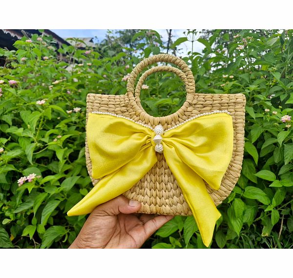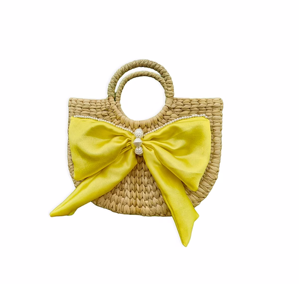 Featuring a delightful yellow satin bow accent with pearl detailing, this bag perfectly blends traditional craftsmanship with contemporary design. Lightweight yet durable, it’s ideal for brunch outings, casual events, or as a statement fashion accessory.