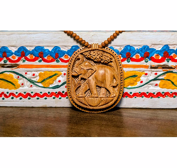 Celebrate the beauty of traditional Indian craftsmanship with this exquisite Handcrafted Wooden Necklace, featuring a finely carved royal elephant motif. Expertly shaped from natural wood, the pendant showcases detailed carving work, pierced patterns, and intricate leaf elements—capturing the cultural symbolism of elephants as icons of strength, prosperity, and good fortune.