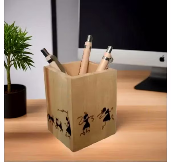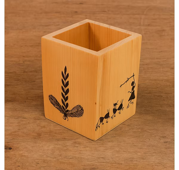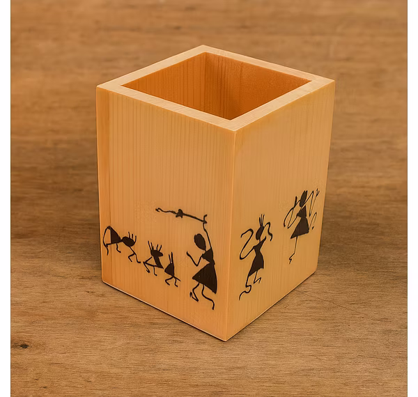 Perfectly sized to organize your pens, pencils, brushes, or small stationery items, this desk accessory blends functionality with cultural elegance. Whether you're decorating your home office, gifting a teacher, or searching for a unique present for an art lover, this Warli-inspired piece is sure to stand out.