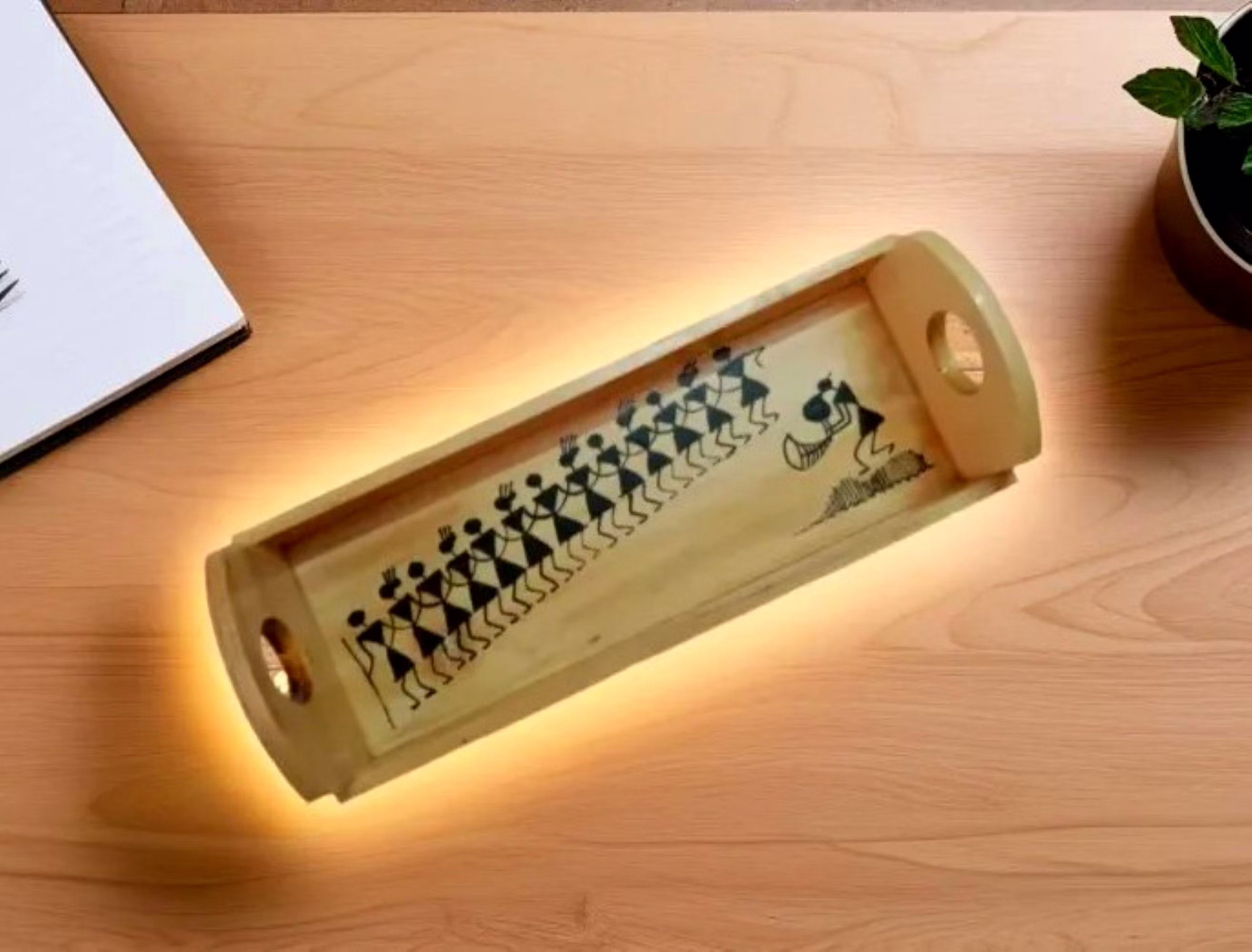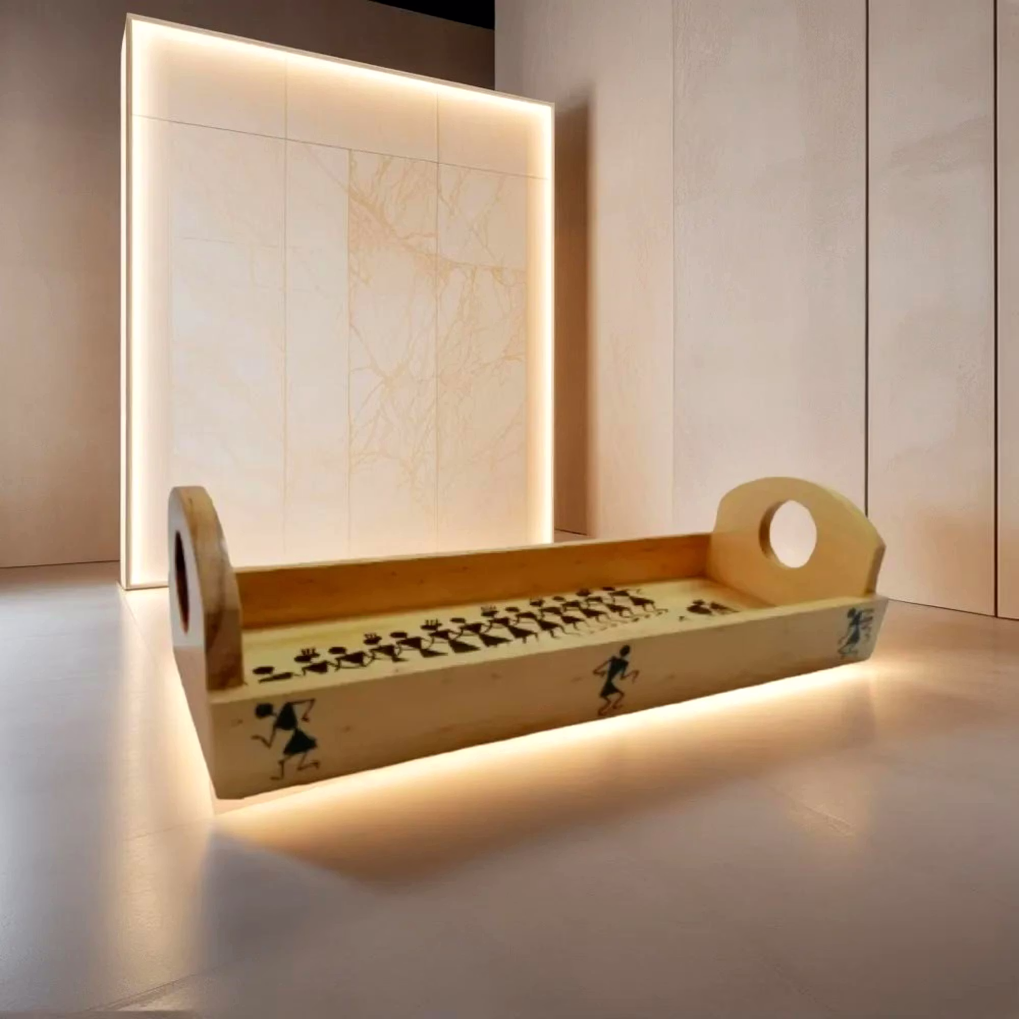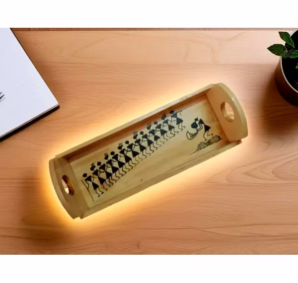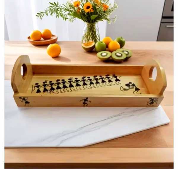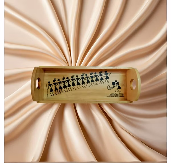 Bring a touch of tradition and culture to your home with this Handcrafted Wooden Tray, beautifully adorned with Warli Tribal Art. Each piece tells a story — featuring intricate hand-painted scenes of daily life, nature, and festive celebrations from the Warli tribe of India.