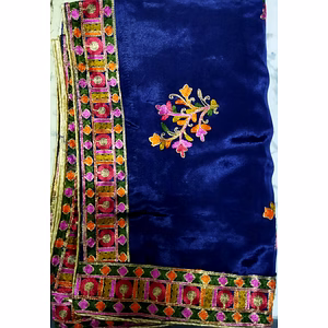 Made with kashmiri style sari embroidery thread work, the dupatta has enchanting embroidery which makes the head turn