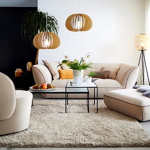 Hanson Coffee Table by XOXA Home has a round table top and a gold metal base hexagon base with a geometric motives on the side.