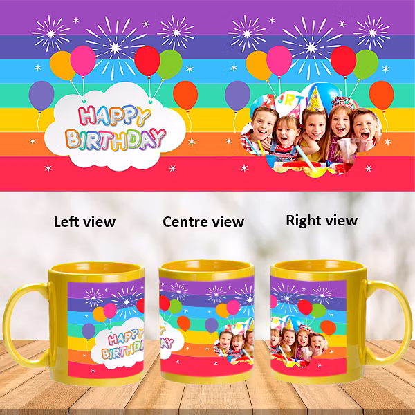 Happy Birthday Colorful Balloons Personalized Patch Yellow Mug