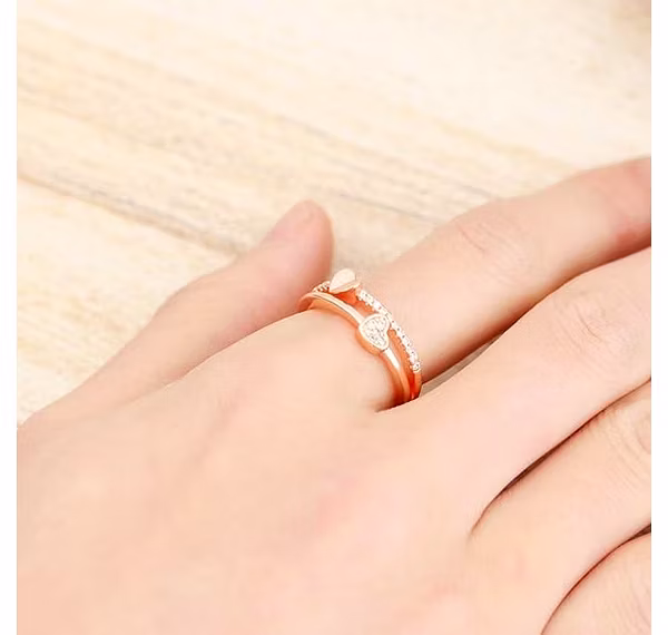 Sparkling with elegance, the Rose Gold Heart Ring is a captivating piece that enhances any outfit. This charming ring features a rose gold plated sterling surgical grade steel band adorned with a sparkling heart-shaped centre, embellished with delicate rhinestones for added brilliance. The adjustable band ensures a comfortable fit for most wearers.