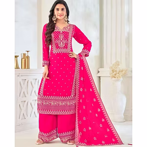 Introducing our exquisite Heavy Chinon Silk dress, a true masterpiece that effortlessly combines elegance and comfort. Crafted with precision and attention to detail, this dress is designed to make you stand out from the crowd. Featuring a heavy Chinon Silk top and sleeves, this dress exudes sheer luxury. The intricate multi-thread embroidery and sequence work add a touch of glamour to the overall design, making it perfect for any special occasion. We understand the importance of a perfect fit, which is why this dress is available in sizes up to 58". The length of the dress reaches a maximum of 44", ensuring a flattering and graceful silhouette. But it's not just about the aesthetics. We believe in providing utmost comfort for our customers. That's why we've incorporated an attached Santoon Silk inner lining, allowing you to move freely and confidently. To complete this ensemble, we have paired it with a heavy Chinon Silk dupatta, adding a regal touch to the overall look. With a weight of just 1.00 Kg, this dress feels lightweight and easy to wear, without compromising on quality. Whether you're attending a wedding, a festive celebration, or a special event, our Heavy Chinon Silk dress is sure to make a lasting impression. Embrace the confidence and elegance that this dress exudes, and be prepared to turn heads wherever you go. Experience luxury, comfort, and style like never before with our exclusive Heavy Chinon Silk dress.