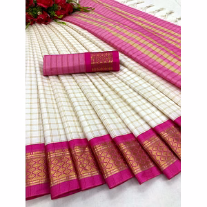 Introducing our exquisite Heavy Rich Cotton Silk Saree, a stunning blend of traditional craftsmanship and contemporary elegance. Made with utmost precision, this saree is crafted from high-quality fabric that combines the richness of cotton with the opulence of silk. The unique jequared weaving technique adds a touch of sophistication, creating a mesmerizing pattern that is sure to catch everyone's attention. The saree is adorned with a rich heavy border, carefully designed with jacquard detailing, further enhancing its beauty and grace. Measuring 5.50 meters in length, this saree provides ample drape and allows you to showcase your style with confidence. The matching blouse piece, with a length of 0.80 meters, perfectly complements the saree, giving you the freedom to create a personalized look. What sets this saree apart is the chit pallu concept, adding a contemporary twist to a traditional garment. The chit pallu, with its delicate design and intricate work, effortlessly showcases the intricate craftsmanship that has gone into creating this masterpiece. Designed to make you feel like royalty, our Heavy Rich Cotton Silk Saree is perfect for weddings, festivals, and other special occasions. It is a true celebration of Indian heritage and craftsmanship, allowing you to make a statement wherever you go. Experience the luxury of our Heavy Rich Cotton Silk Saree and embrace the elegance it brings. With its impeccable quality, exquisite design, and timeless appeal, this saree is a must-have addition to any wardrobe. Elevate your style and create unforgettable memories with this extraordinary piece of art.