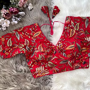 Introducing the Heavy Fox Georgette Designer Blouse with Open Back, a truly captivating piece that combines elegance with a touch of allure. Crafted from high-quality fox georgette fabric, this blouse exudes sophistication and grace. The lightweight material drapes effortlessly, flattering your silhouette and providing utmost comfort. The open back design adds a hint of glamour, making it perfect for both formal occasions and stylish evenings out. Designed with meticulous attention to detail, this blouse features intricate embellishments that add a touch of opulence. The delicate embroidery and shimmering sequins create a mesmerizing effect, ensuring all eyes will be on you. For added versatility, the blouse comes with a matching inner lining, allowing you to effortlessly pair it with your favorite saree or lehenga. Not only does the Heavy Fox Georgette Designer Blouse look stunning, but it also offers practical benefits. The breathable fabric ensures you stay cool even during warm weather, while the sturdy construction guarantees durability, so you can enjoy this timeless piece for years to come. With its unique combination of elegance and allure, this blouse is the perfect addition to your wardrobe. Whether you're attending a wedding, a festive celebration, or a special event, this blouse will make you feel like the belle of the ball. Embrace your inner fashionista and let the Heavy Fox Georgette Designer Blouse with Open Back enhance your style. Experience the beauty, comfort, and versatility of this exquisite piece, and make a lasting impression wherever you go.