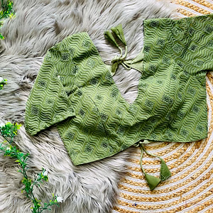 Introducing the Heavy Fox Georgette Designer Blouse with Open Back, a truly captivating piece that combines elegance with a touch of allure. Crafted from high-quality fox georgette fabric, this blouse exudes sophistication and grace. The lightweight material drapes effortlessly, flattering your silhouette and providing utmost comfort. The open back design adds a hint of glamour, making it perfect for both formal occasions and stylish evenings out. Designed with meticulous attention to detail, this blouse features intricate embellishments that add a touch of opulence. The delicate embroidery and shimmering sequins create a mesmerizing effect, ensuring all eyes will be on you. For added versatility, the blouse comes with a matching inner lining, allowing you to effortlessly pair it with your favorite saree or lehenga. Not only does the Heavy Fox Georgette Designer Blouse look stunning, but it also offers practical benefits. The breathable fabric ensures you stay cool even during warm weather, while the sturdy construction guarantees durability, so you can enjoy this timeless piece for years to come. With its unique combination of elegance and allure, this blouse is the perfect addition to your wardrobe. Whether you're attending a wedding, a festive celebration, or a special event, this blouse will make you feel like the belle of the ball. Embrace your inner fashionista and let the Heavy Fox Georgette Designer Blouse with Open Back enhance your style. Experience the beauty, comfort, and versatility of this exquisite piece, and make a lasting impression wherever you go.