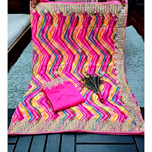 Introducing our exquisite Vichitra Saree, a masterpiece crafted with utmost precision and artistry. This enchanting saree is a blend of traditional elegance and contemporary style, designed to make a lasting impression. The key features of this saree are truly captivating. Made with premium-quality fabric, it offers a luxurious feel against your skin, ensuring utmost comfort throughout the day. The mills printed Bhadhani adds a touch of uniqueness, making each saree one-of-a-kind. What sets this saree apart is the exceptional heavy gotta patti work, meticulously handcrafted to perfection. This intricate detailing, combined with the delicate pearls work and lace broder, creates an aura of sheer opulence. The ready-made lace broder and pum pum further enhance the overall charm, adding a playful yet elegant element to the design. Not only is this saree a visual delight, but it also comes with a beautifully crafted Bangalori blouse with lace broder, perfectly complementing the saree and completing the look. With a generous saree length of 6.30 meters, it allows you to drape it effortlessly and create stunning drapes that accentuate your silhouette. Despite its grandeur, this saree is surprisingly lightweight, ensuring ease of movement and comfort. Indulge yourself in the luxurious elegance of our Vichitra Saree. Whether it's a wedding, festive occasion, or a special celebration, this saree is your perfect companion to make a statement. Elevate your style and leave a lasting impression with this alluring masterpiece.
