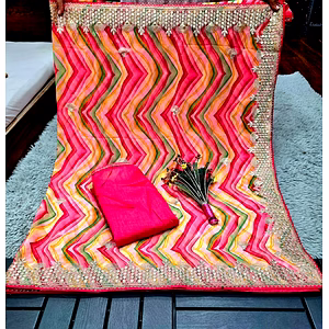Introducing our exquisite Heavy Gotta Patti Work Saree, adorned with pearls and lace, a perfect blend of elegance and charm. This stunning saree is meticulously crafted to enhance your natural beauty and make a lasting impression at any occasion. Featuring intricate gotta patti work, this saree showcases the rich heritage of Indian craftsmanship. Each thread is carefully handwoven to create intricate patterns that add a touch of opulence to your ensemble. The meticulous placement of pearls and delicate lace further accentuates its allure, making it a truly captivating piece. Designed with both style and comfort in mind, this saree is made from high-quality fabric that drapes gracefully over your silhouette. The lightweight and breathable material ensure that you feel comfortable throughout the day, allowing you to effortlessly carry yourself with confidence. Perfect for weddings, festivals, or any special event, this saree effortlessly exudes elegance and sophistication. Its timeless appeal transcends trends, making it a versatile addition to your wardrobe. Whether you pair it with traditional jewelry for a regal look or opt for a modern twist, this saree is sure to make you the center of attention. With our Heavy Gotta Patti Work Saree, you not only get to embrace the beauty of traditional Indian craftsmanship but also make a style statement that is uniquely yours. Own this masterpiece and experience the joy of wearing a saree that reflects your impeccable taste and individuality. Elevate your style and be the epitome of grace with our Heavy Gotta Patti Work Saree. Unlock the magic of timeless elegance and let your inner beauty shine through.