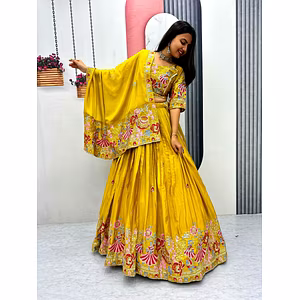 Introducing our stunning Lehengha set, crafted with utmost care and attention to detail. Made from heavy Fox Georgette fabric, this ensemble is designed to make you stand out from the crowd. The Lehengha features a beautiful flair measuring 3.50 meters, allowing for graceful movement and a regal appearance. The length can be adjusted to a maximum of 42 inches, catering to different body types. Additionally, the size can be customized up to 44 inches, ensuring a perfect fit. The inner lining is made of luxurious American Crepe Silk, providing a comfortable and smooth feel against the skin. To add volume and structure, the Lehengha is accompanied by a standard Can-Can and Canvas, enhancing the overall look. The blouse, made from heavy Fox Georgette Silk, adds an element of elegance and sophistication to the ensemble. With its intricate thread and sequence embroidery, it exudes a touch of glamour and allure. To complete the look, the set includes a matching heavy Fox Georgette Silk dupatta, measuring 2.25 meters. It drapes beautifully and adds a touch of femininity to the overall outfit. This Lehengha set is semi-stitched, allowing for easy customization according to your preferences. With its weight of 1.500 Kg, it offers a comfortable fit while making a bold style statement. Whether it's a wedding, festive occasion, or any special event, our Lehengha set is the perfect choice to make heads turn. Elevate your style with this exquisite ensemble and experience unmatched elegance and charm.