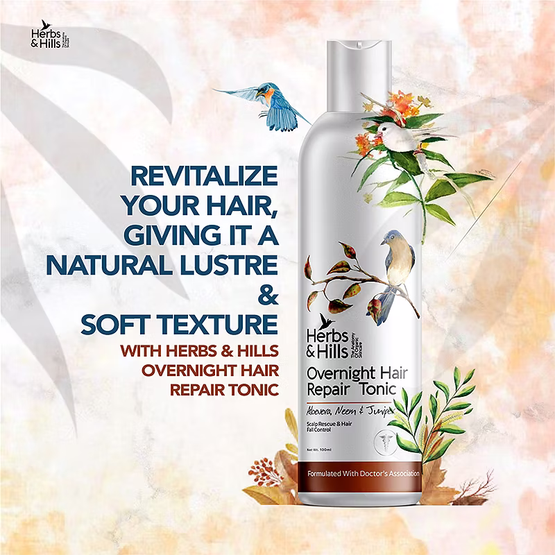 Crafted with a unique blend of natural herbs, including Amla for strength and Bhringraj for growth, this tonic is a powerhouse of botanical goodness. Dive into the world of herbal hair care with Herbs & Hills Overnight Hair Repair Tonic.