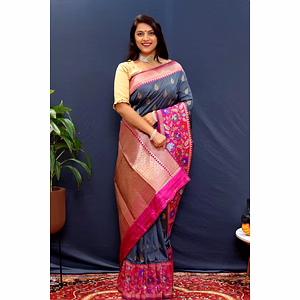 Elevate your wardrobe with our high-quality pure Rasiyan silk saree, featuring soft Jari work and a matching blouse. This exquisite saree is the perfect addition to any formal occasion, instantly adding elegance and sophistication to your look. Crafted from only the finest silk, this saree is incredibly soft to the touch and drapes beautifully over your figure. The intricate Jari work adds a touch of glamour and sparkle to the saree, making it perfect for weddings, receptions, and other special events. But this saree isn't just about style - it's also incredibly comfortable to wear. The breathable silk fabric ensures that you stay cool and comfortable, even during long events. The matching blouse is the perfect complement to the saree, featuring the same soft Jari work and silk fabric. It's designed to fit perfectly and enhance the beauty of the saree, making you look and feel your very best. What sets our high-quality pure Rasiyan silk saree apart is its attention to detail and craftsmanship. From the hand-woven silk to the intricate Jari work, every aspect of this saree has been carefully crafted to ensure the highest quality and longevity. Invest in our high-quality pure Rasiyan silk saree today and experience the perfect combination of style, comfort, and elegance.