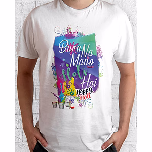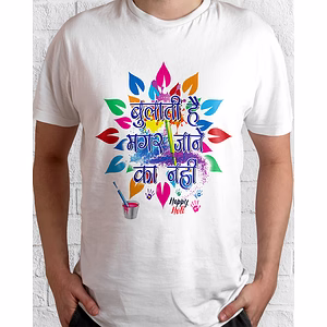 Holi Hai White, Polyster, Round Neck, For Men,Women And Kids