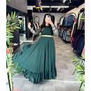 Gown Fabric : GeorgetteGown inner : crapeGown Colour : GreenGown Size : S,M,L,XLGown Length : 58""Sleeve Length : 23Gown Flair : 4 MTRGown Work : Heavy Embroidery Zari + Sequence Work Ready Made Waist BeltDupatta Fabric : Georgette (Attach With Gown Shoulder )Weight : 700 GMNote:-Color Variation May be Change Due To Light ,Camera And Mobile Screen Effect.BE aware of some sellers using our shoot pictures and selling cheap quality Designed for international appeal, this top delivers both elegance and export-ready quality.
