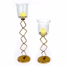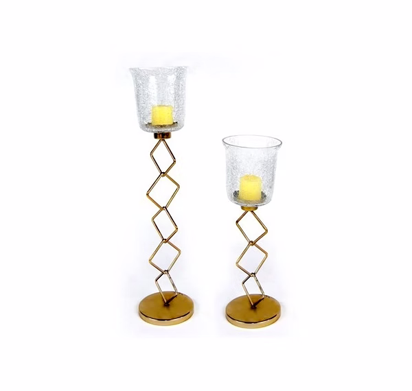 This hurricane lantern is available in two sizes: 6.5x6.5x19.5 inches and 5.5x5.5x17.5 inches. It is made of iron and glass. The larger size weighs 1.2 kg, and the smaller size weighs 0.47 kg.