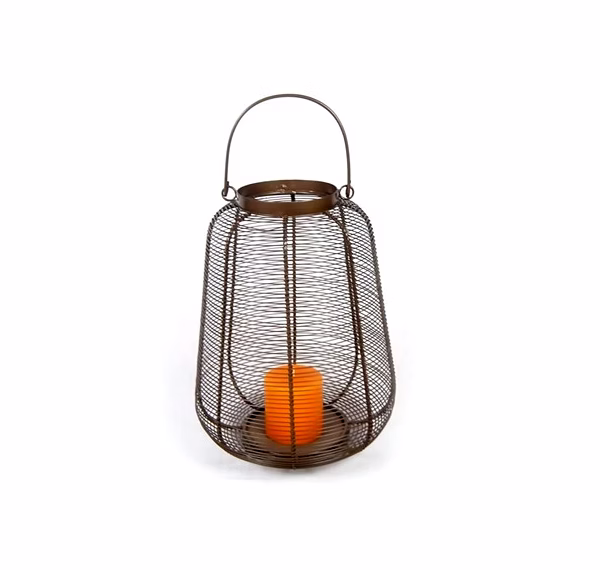 This hurricane lantern is made of iron. It measures 10x10x17 inches and weighs 1.662 kg. It serves as a lantern and is designed for functional lighting.