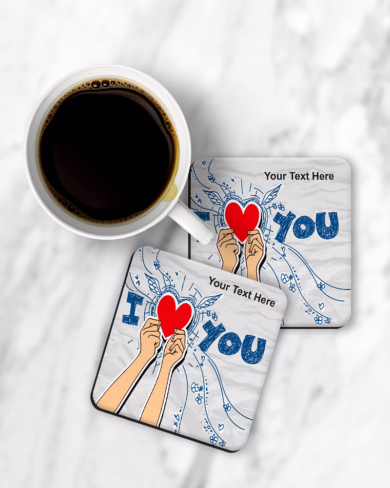 I Love You Holding Heart Printed Designer Square Coaster