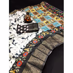 This stunning Indian Flag Print Dola Silk Saree with Contrast Border is the perfect blend of traditional and modern styles. Made with high-quality Dola silk, this saree is soft, lightweight, and comfortable to wear. The saree features a beautiful Indian flag print that represents unity in diversity, making it a great choice for Independence Day and Republic Day celebrations. The contrasting border in vibrant colors adds a touch of elegance and makes the saree stand out. Designed to flatter all body types, this saree comes with an unstitched blouse piece that can be customized to your liking. The saree drapes beautifully and is perfect for any occasion, be it a wedding, festival, or formal event. The unique selling point of this saree lies in its versatility. It can be dressed up or down, and can be styled in different ways to suit your mood and personality. Wear it with traditional Indian jewelry and accessories for a classic look, or team it up with modern accessories for a trendy vibe. Overall, the Indian Flag Print Dola Silk Saree with Contrast Border is a must-have in every Indian woman's wardrobe. With its unique blend of style, comfort, and versatility, it offers unmatched value and is sure to make you stand out from the crowd. Upgrade your wardrobe today with this beautiful saree and experience the magic of Indian fashion!