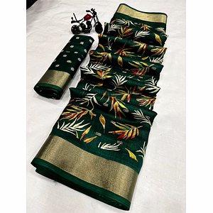 This stunning Indian Flag Print Dola Silk Saree with Contrast Border is the perfect blend of traditional and modern styles. Made with high-quality Dola silk, this saree is soft, lightweight, and comfortable to wear. The saree features a beautiful Indian flag print that represents unity in diversity, making it a great choice for Independence Day and Republic Day celebrations. The contrasting border in vibrant colors adds a touch of elegance and makes the saree stand out. Designed to flatter all body types, this saree comes with an unstitched blouse piece that can be customized to your liking. The saree drapes beautifully and is perfect for any occasion, be it a wedding, festival, or formal event. The unique selling point of this saree lies in its versatility. It can be dressed up or down, and can be styled in different ways to suit your mood and personality. Wear it with traditional Indian jewelry and accessories for a classic look, or team it up with modern accessories for a trendy vibe. Overall, the Indian Flag Print Dola Silk Saree with Contrast Border is a must-have in every Indian woman's wardrobe. With its unique blend of style, comfort, and versatility, it offers unmatched value and is sure to make you stand out from the crowd. Upgrade your wardrobe today with this beautiful saree and experience the magic of Indian fashion!