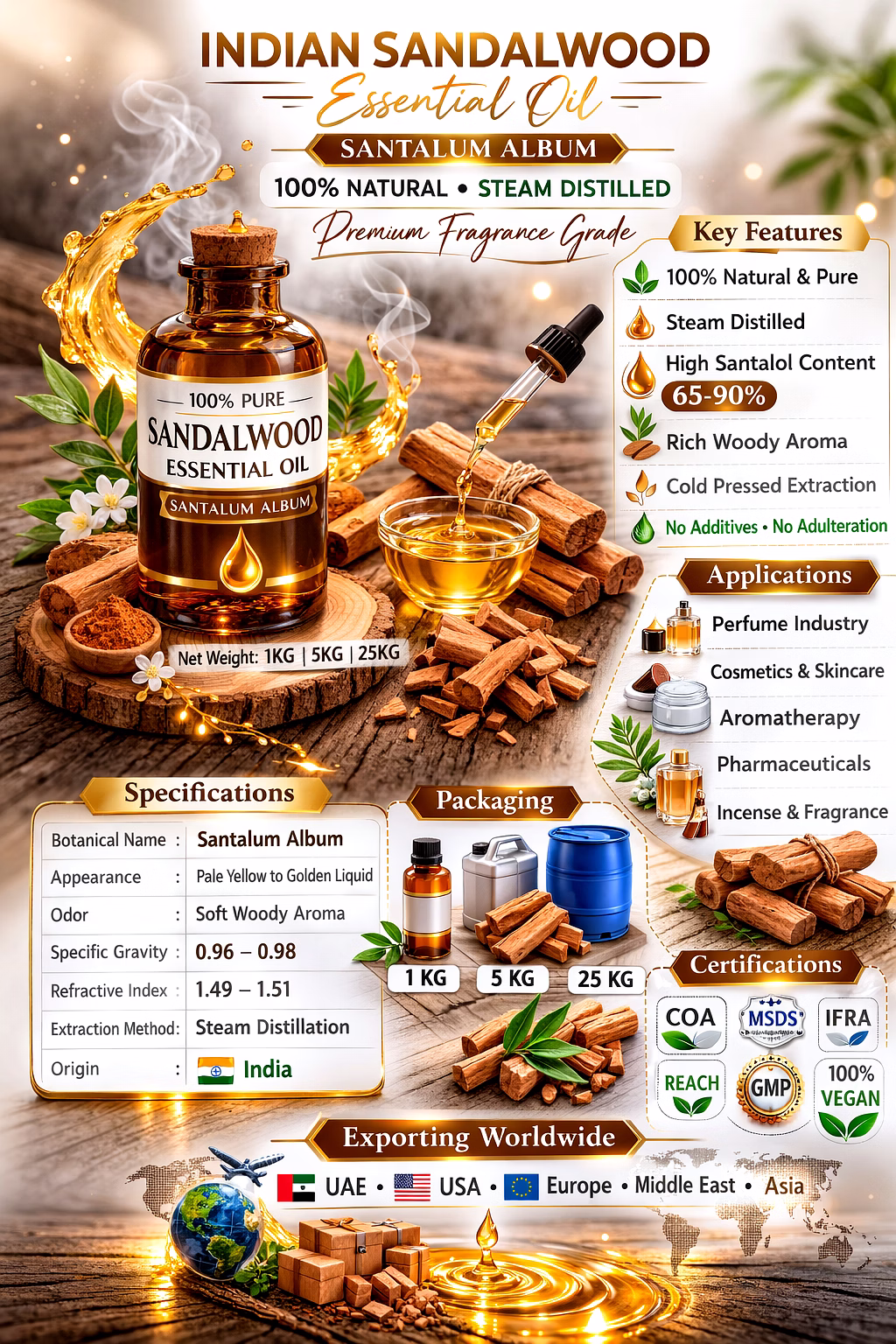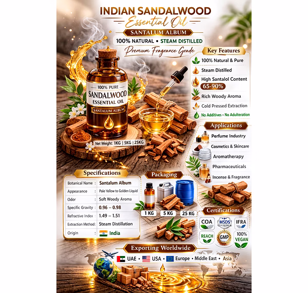 Unlock the rich heritage of Indian Sandalwood with our premium Essential Oil. Sourced from the lush forests of India, our oil is extracted through a meticulous steam distillation process to ensure the highest quality. Immerse yourself in the exotic aroma that embodies tranquility and luxury.