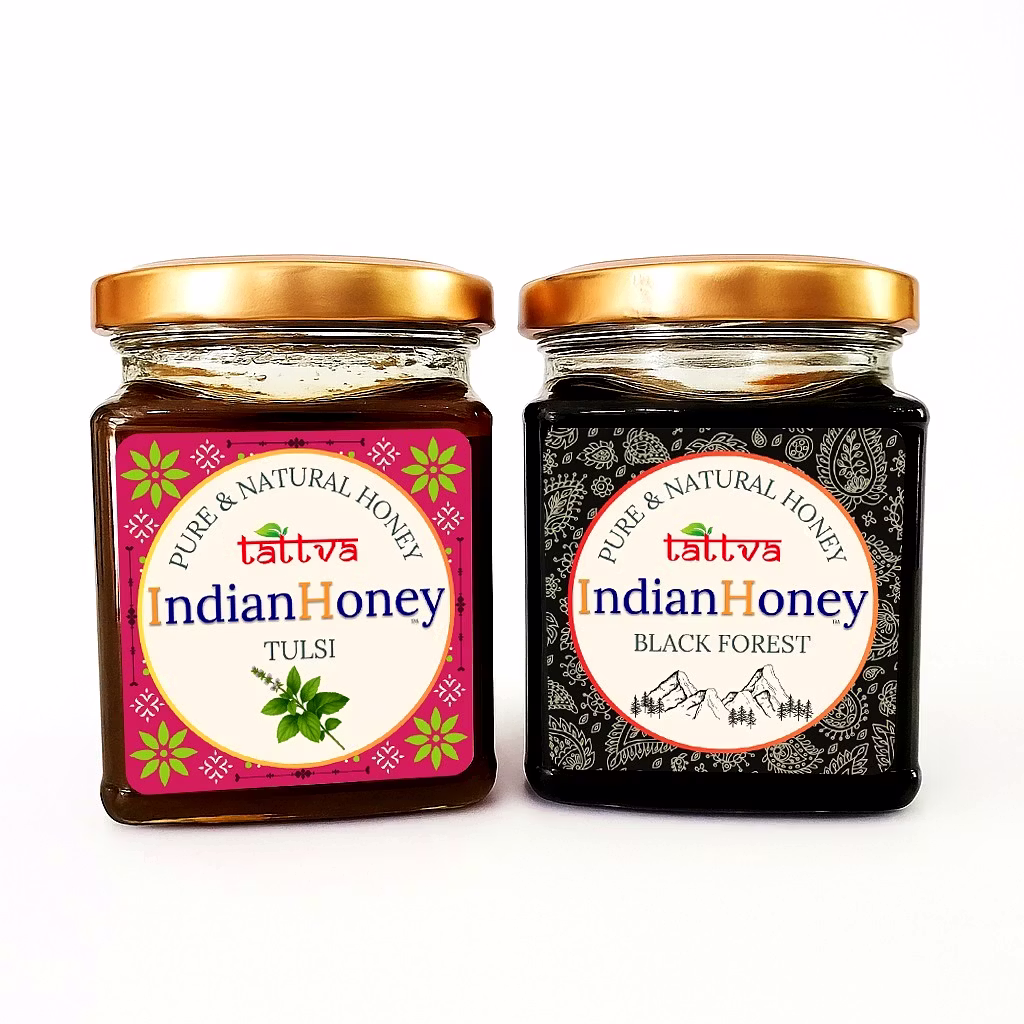 IndianHoney brings you the perfect health combination: the robust, dark, and mineral-dense Black Forest Honey (Honeydew). Exceptionally rich in Iron, Calcium, and superior antioxidants. and our powerful Ayurvedic Tulsi (Holy Basil) Infused Honey. Known as the 'Queen of Herbs' for its adaptogenic and expectorant properties, supporting stress relief and respiratory health. Sourced raw and pure, this duo offers complementary health benefits for your daily wellness. Ideal for use as a natural sweetener, immunity booster, or therapeutic tonic.