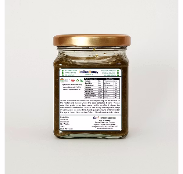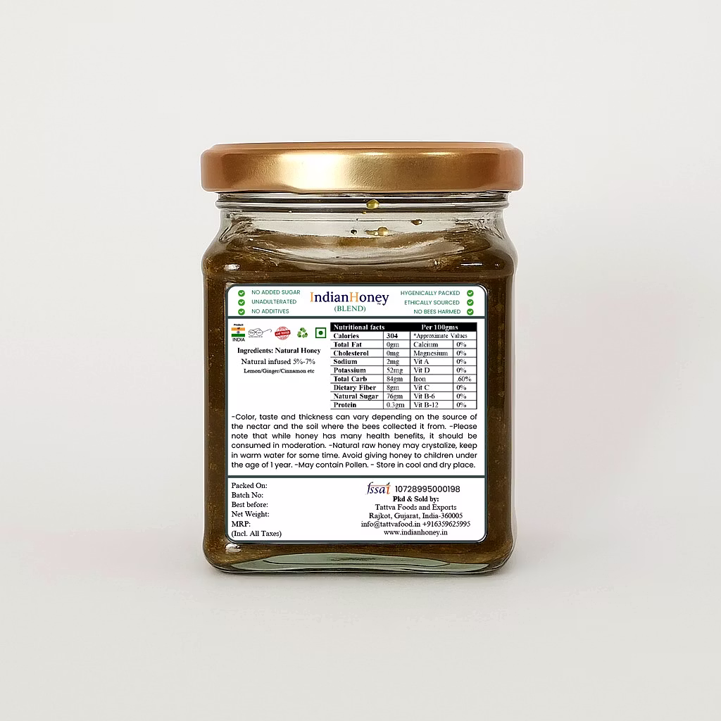 IndianHoney Ginger Honey is infused with natural ginger extracts for a soothing, spicy-sweet flavor. It aids digestion, relieves sore throat, and acts as a natural detoxifier.