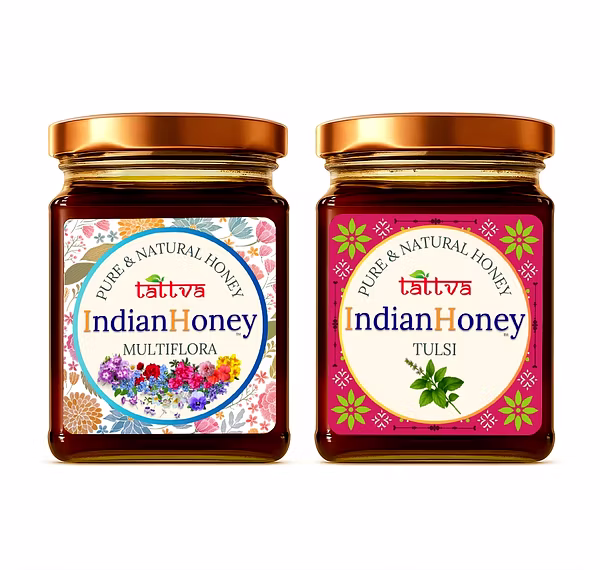 IndianHoney Himalayan Multiflora & Ayurvedic & Stress-Relief natural tulsi Honey Combo Pack (230gm & 230gm) - Himalayan Multiflora & Tulsi Details