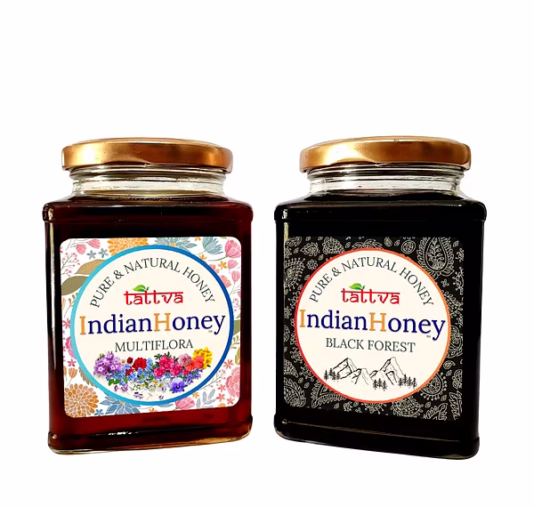 IndianHoney Himalayan Multiflora & Black Forest Honey Combo (Pack of 2) is a unique blend of natural honeys, offering distinct floral flavors and rich nutrition from the Himalayas and Indian forests. Each jar is unprocessed, unfiltered, and ethically sourced to deliver authentic sweetness and health benefits. Enjoy it in warm water, milk, or directly for a daily energy boost. Ideal for health-conscious individuals who prefer pure, chemical-free natural sweeteners.