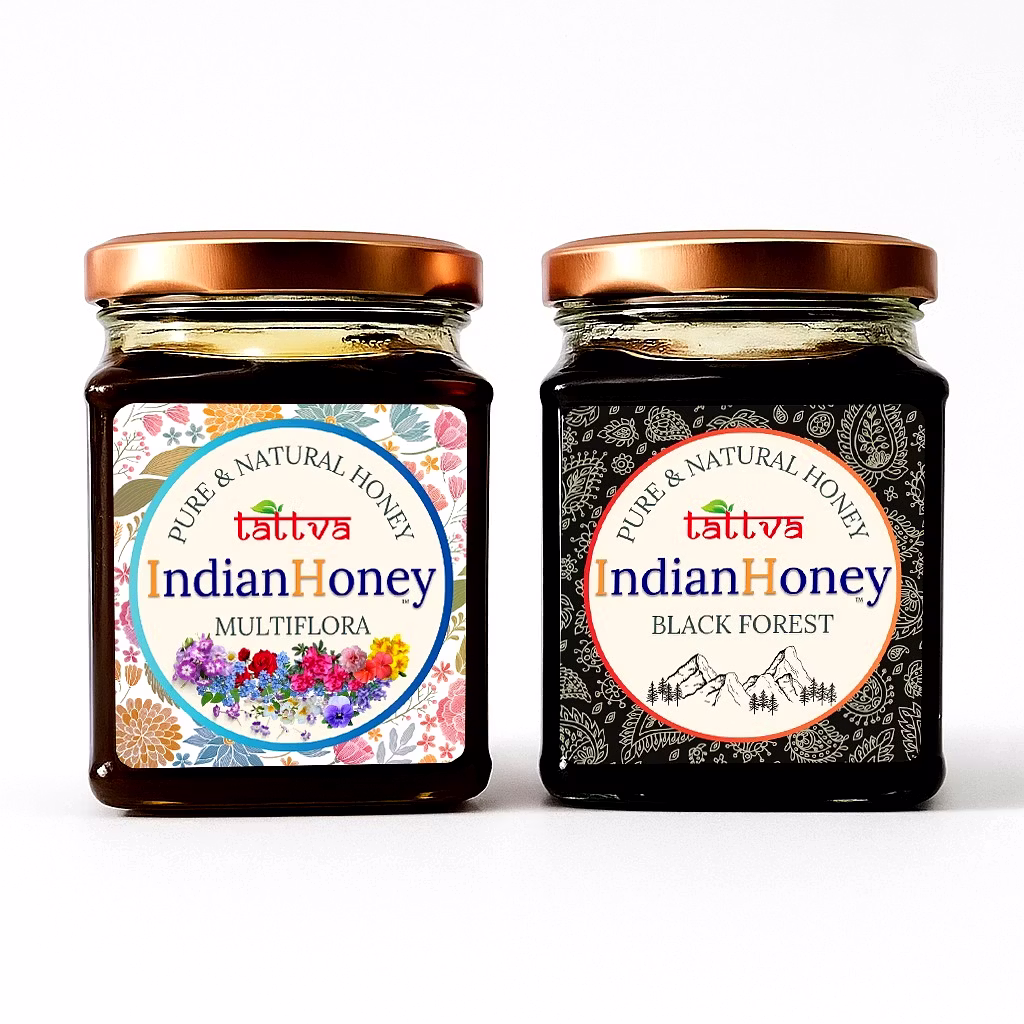 IndianHoney brings you the perfect health combination: the delicate, floral notes of Himalayan Multiflora. A natural immunity booster, rich in vitamins and minerals. and the robust, dark, and mineral-dense Black Forest Honey (Honeydew). Exceptionally rich in Iron, Calcium, and superior antioxidants. Sourced raw and pure, this duo offers complementary health benefits for your daily wellness. Ideal for use as a natural sweetener, immunity booster, or therapeutic tonic.