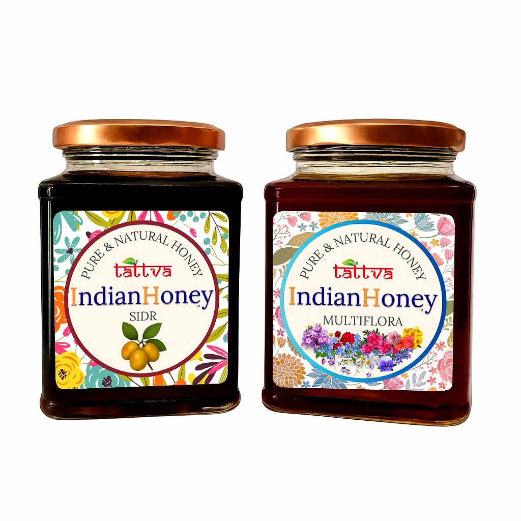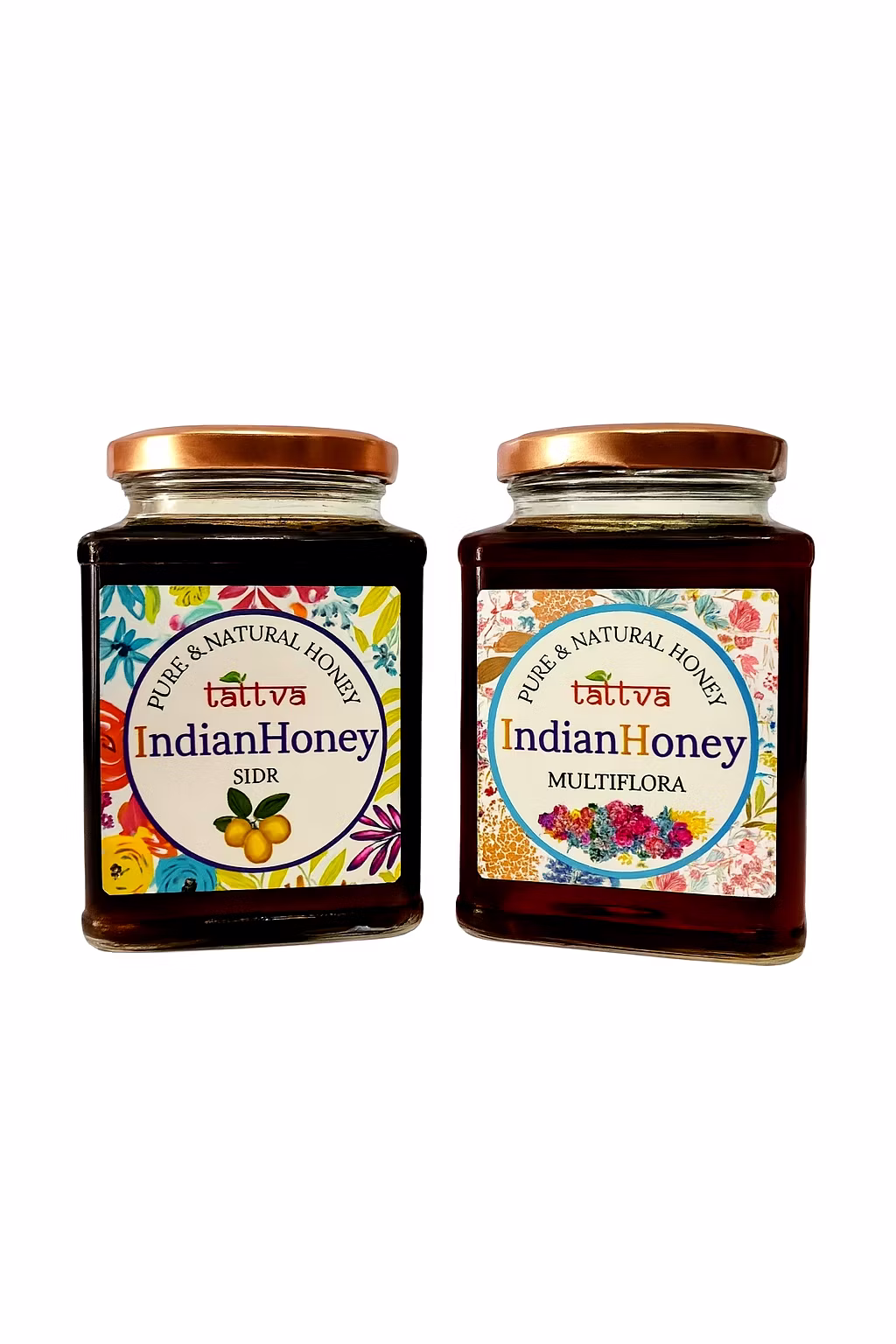 IndianHoney Himalayan Multiflora & Sidr Honey Combo (Pack of 2) is a unique blend of natural honeys, offering distinct floral flavors and rich nutrition from the Himalayas and Indian forests. Each jar is unprocessed, unfiltered, and ethically sourced to deliver authentic sweetness and health benefits. Enjoy it in warm water, milk, or directly for a daily energy boost. Ideal for health-conscious individuals who prefer pure, chemical-free natural sweeteners.