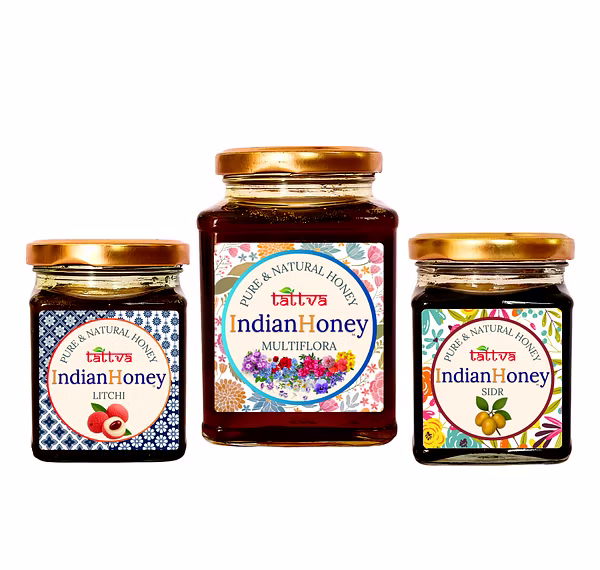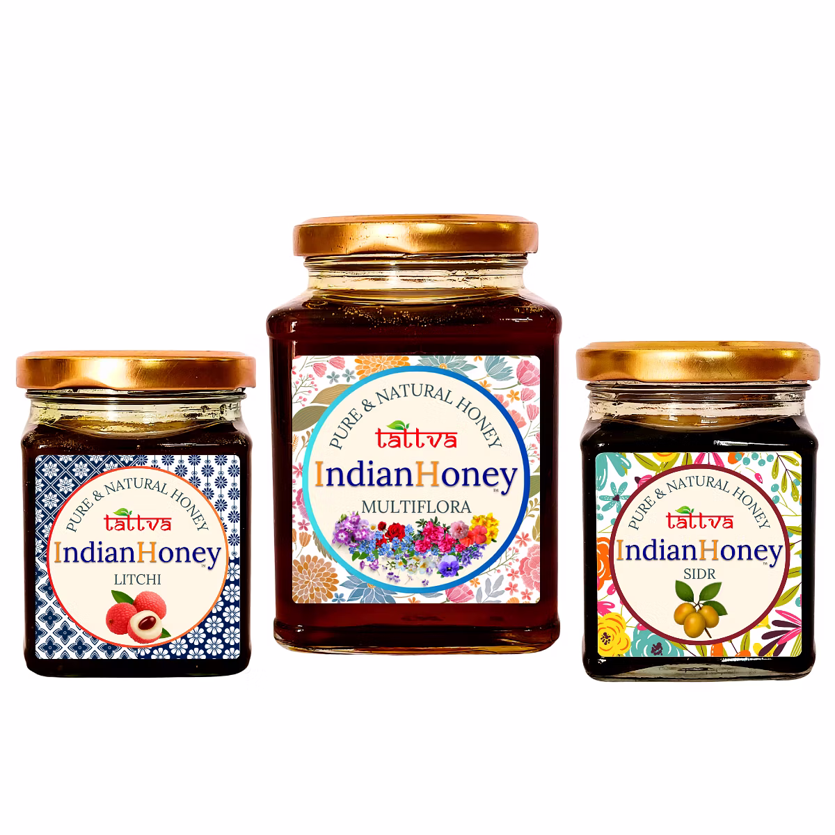 IndianHoney's Ultimate Wellness Trio: Experience the power of three distinct and therapeutic honeys. This pack features the delicate, floral notes of Himalayan Multiflora. A natural immunity booster, rich in vitamins and minerals., sidr is a raw, natural delight., and litchi is a raw, natural delight.. Sourced raw and pure, this combo is designed for comprehensive health, including boosted immunity, respiratory support, and daily vitality. (Includes 1x500gm + 2x230gm jars).